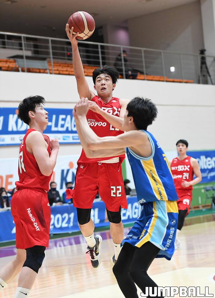 [점프볼=이천/문복주 기자] 31일 이천 LG챔피언스파크 실내농구장에서 열린 2020-2021 KBL D리그 플레이오프 준결승 SK와 삼성의 경기, SK 오재현이 골밑을 파고들어 레이업을 시도하고 있다.