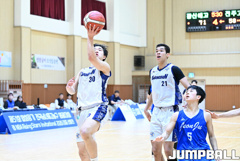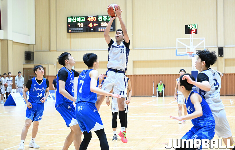 [점프볼=영광/문복주 기자]12일 전라남도 영광군 영광 스포티움 국민체육센터에서 열린 제51회 협회장기 전국남녀중고농구대회 남고부 8강전 광신방송예술고와 전주고의 경기에서 광신방송예술고가 89-70으로 전주고에 승리를 했다.