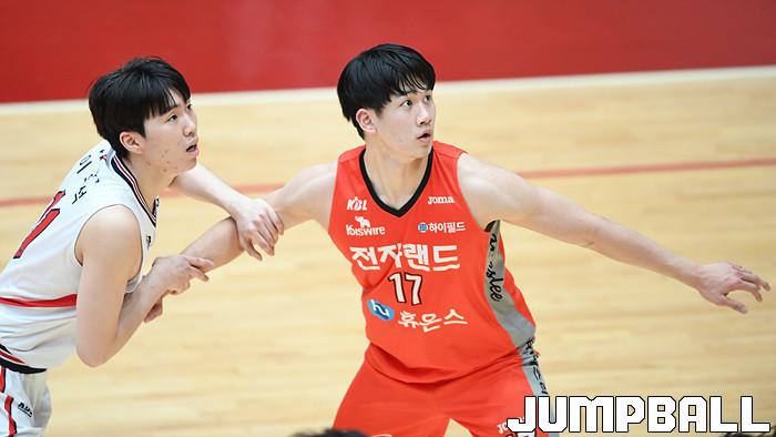 [점프볼=이천/박상혁 기자] 11일 이천 LG챔피언스파크에서 열린 2020-2021 현대모비스 프로농구 KBL 가리그 2차대회 인천 전자랜드와 울산 현대모비스의 준결승 경기, 전자랜드 양재혁이 박스아웃을 하고 있다.