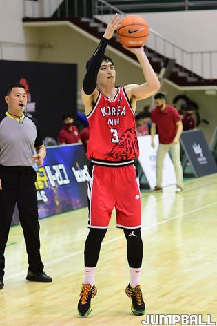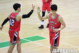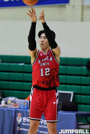 6일 충주 건국대학교 글로컬캠퍼스 건국체육관에서 열린 '2021 KUSF 대학농구 U리그' 고려대와 한양대 파이널 경기, 고려대 하윤기가 골밑에서 슛을 시도하고 있다.