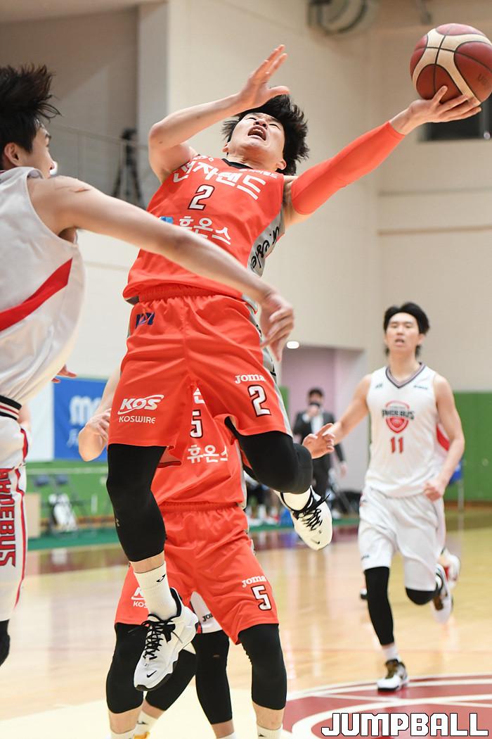 [점프볼=이천/박상혁 기자] 11일 이천 LG챔피언스파크에서 열린 2020-2021 현대모비스 프로농구 KBL 가리그 2차대회 인천 전자랜드와 울산 현대모비스의 준결승 경기, 전자랜드 김정년이 슛을 시도하고 있다.