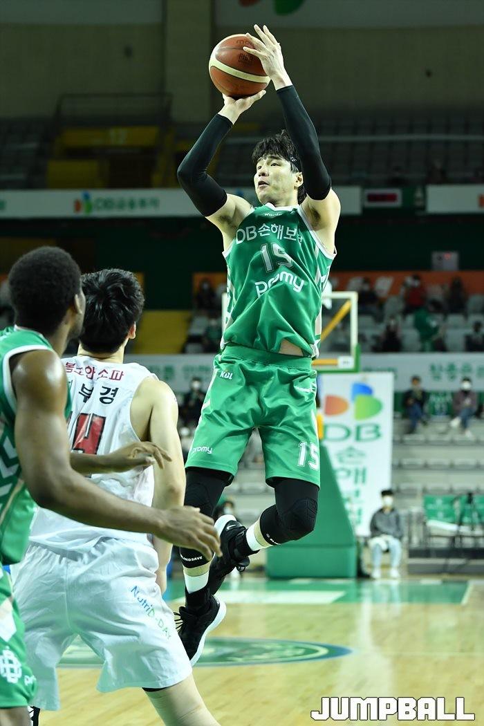[점프볼=원주/유용우 기자] 13일 원주 종합체육관에서 열린 2020-2021 현대모비스 프로농구 원주 DB와 서울 SK의 경기, DB 김종규가 슛을 던지고 있다.