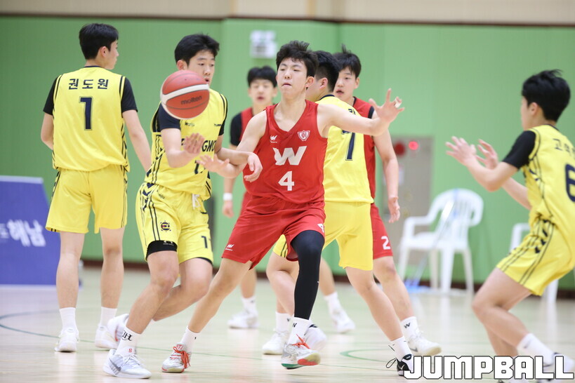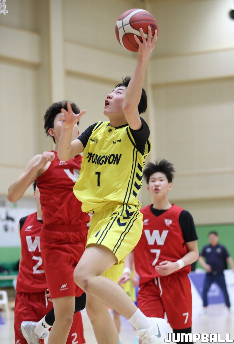 18일 전남 해남 구교체육관에서 열린 제63회춘계전국남녀 중고농구연맹전 남중부 1차 결선 경기, 평원중이 점수를 주고 받는 팽팽한 접전을 뚫고 70-64로 휘문중에 역전승을 거두고 16강에 입성했다.