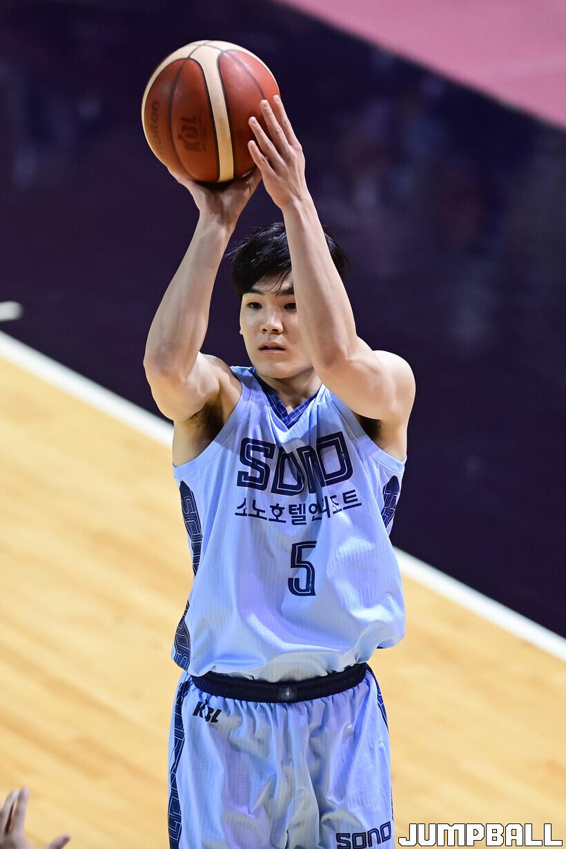 [점프볼=용인/박상혁 기자] 25일 경희대 국제캠퍼스 선승관에서 열린 2025-2026 KBL D리그 고양 소노와 원주 DB의 경기, 소노 조석호가 3점슛을 시도하고 있다.
