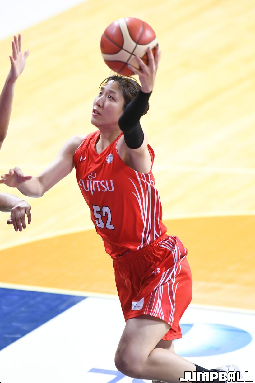 초반부터 후지쯔가 어렵지 않게 분위기를 잡았다. 조슈아와 미야자와가 1쿼터에만 17점을 합작하며 공격을 이끌었다. 2쿼터에는 조슈아의 높이가 돋보였다. 190cm의 큰 신장을 앞세워 골밑에서 득점과 리바운드를 적립했다. 여기에 하야시 마호는 외곽에서 지원 사격을 했다. 하야시 사키도 공격을 성공시킨 후지쯔는 41-26으로 전반전을 마쳤다.