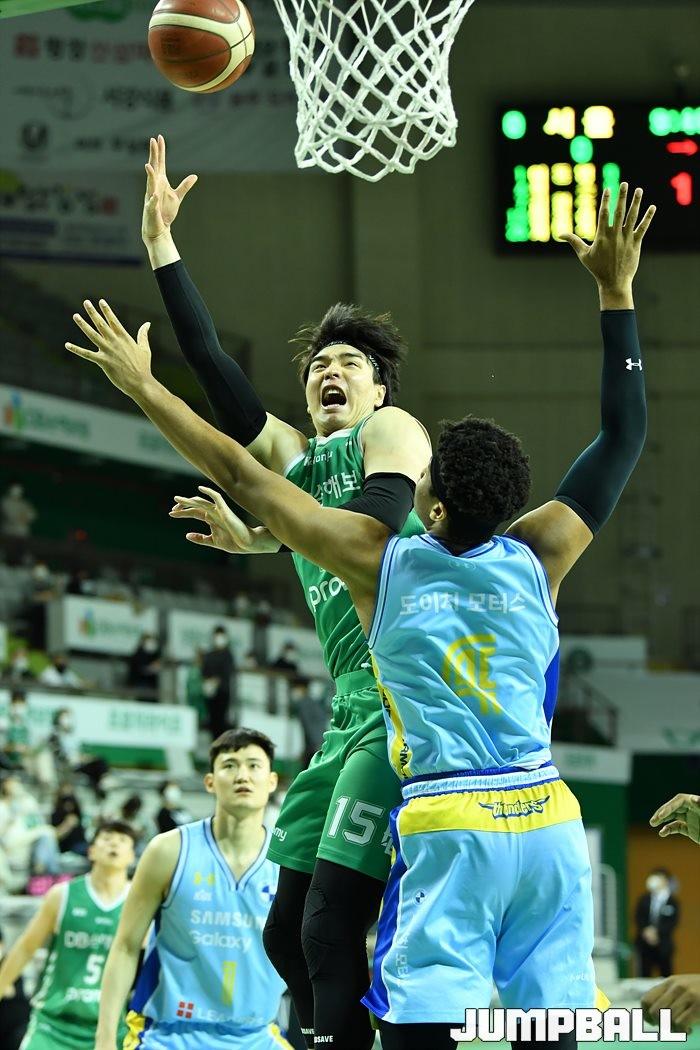 [점프볼=원주/유용우 기자] 14일 원주 종합체육관에서 열린 2020-2021 현대모비스 프로농구 원주 DB와 서울 삼성의 경기, DB 김종규가 공격을 시도하고 있다.