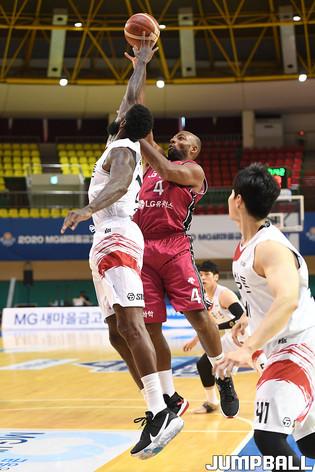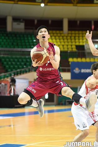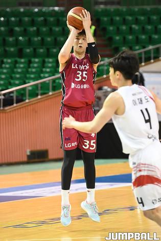 [점프볼=군산/박상혁 기자] 24일 군산월명실내체육관에서 열린 2020 MG새마을금고 KBL컵 안양 KGC인삼공사와 창원 LG의 경기, LG 조성민이 공격을 시도하고 있다.