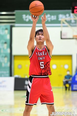 6일 충주 건국대학교 글로컬캠퍼스 건국체육관에서 열린 '2021 KUSF 대학농구 U리그' 고려대와 한양대 파이널 경기, 한양대 이승우가 레이업슛을 시도하고 있다.