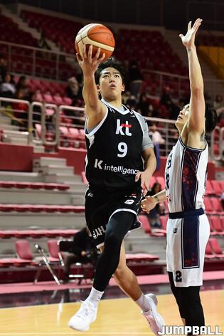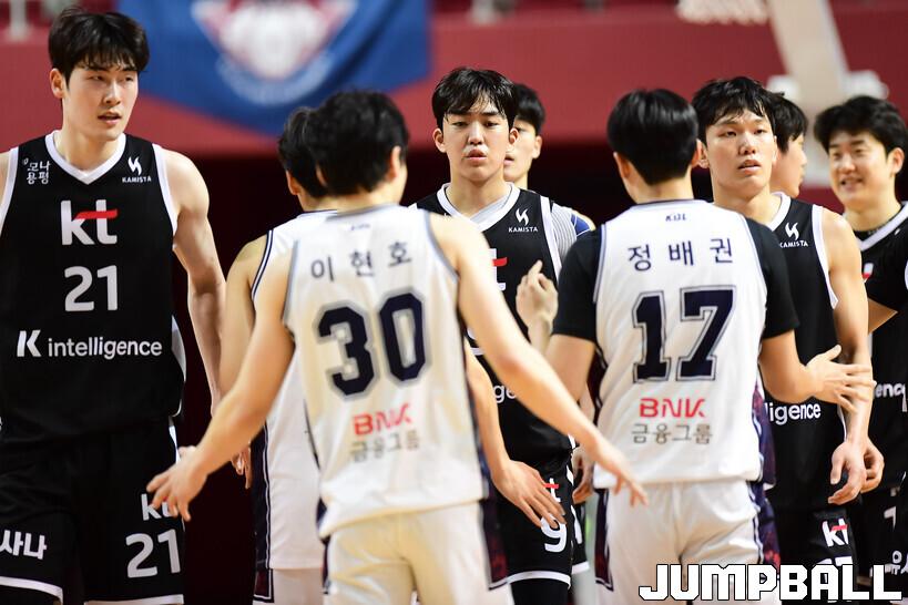 [점프볼=용인/박상혁 기자] 9일 경희대학교 국제캠퍼스 선승관에서 열린 2025-2026 KBL D리그 수원 KT와 부산 KCC의 경기, KT가 KCC에 79-73으로 승리했다.