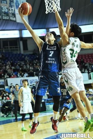 4일 전주실내체육관에서 열린 2021~2022 KGC인삼공사 정관장 프로농구 전주 KCC와 원주 DB의 경기, DB 정호영이 골밑으로 돌파하고 있다.