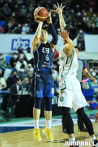 4일 전주실내체육관에서 열린 2021~2022 KGC인삼공사 정관장 프로농구 전주 KCC와 원주 DB의 경기, DB 정호영이 레이업 공격을 하고 있다.