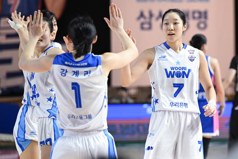 아산 우리은행은 7일 용인체육관에서 열린 BNK금융 2025~2026 여자프로농구 용인 삼성생명과의 경기에서 62-59로 승리, 3연패에서 벗어났다. 우리은행의 시즌 전적은 2승 5패(6위)다.