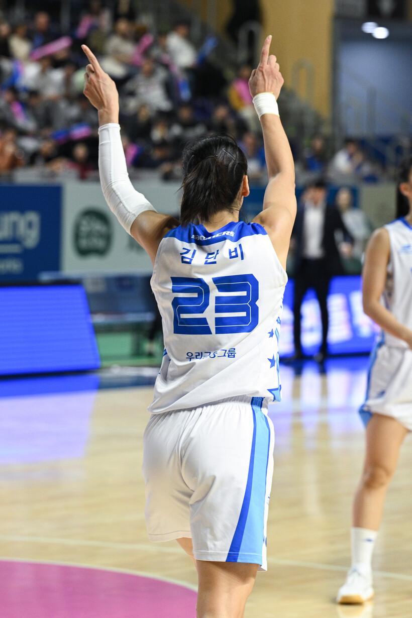 3쿼터도 우리은행은 줄곧 리드를 지켰다. 쿼터 중반 이해란과 최예슬의 연속 득점으로 39-36까지 쫓겼지만, 김단비와 세키 나나미, 이민지까지 너나 할 것 없이 득점을 추가하며 달아났다. 특히 김단비는 팀의 3쿼터 12개 리바운드 중 절반(6개)을 책임지기까지 했다. 49-40, 3쿼터까지 리드는 우리은행의 몫이었다.