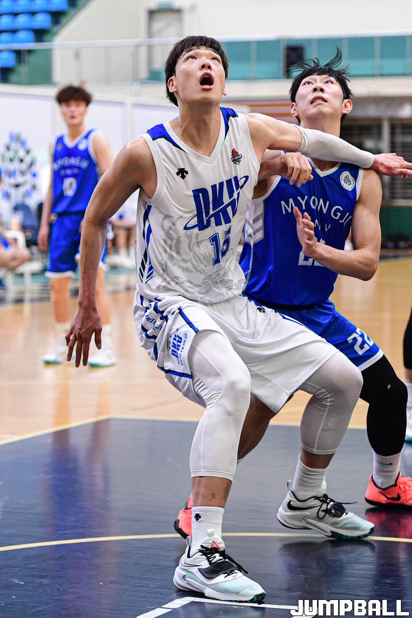 4일 명지대 체육관에서 열린 2022 KUSF 대학농구 U리그 명지대와 단국대의 경기, 단국대 조재우가 박스아웃을 하고 있다.