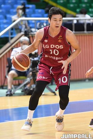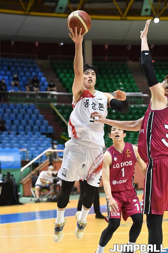 [점프볼=군산/박상혁 기자] 24일 군산월명실내체육관에서 열린 2020 MG새마을금고 KBL컵 안양 KGC인삼공사와 창원 LG의 경기, KGC 변준형이 골밑에서 슛을 시도하고 있다.