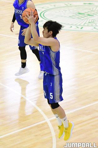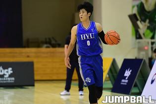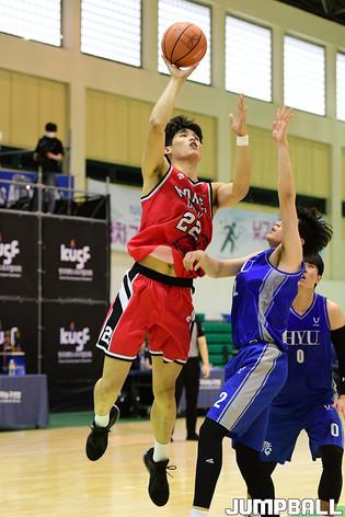 6일 충주 건국대학교 글로컬캠퍼스 건국체육관에서 열린 '2021 KUSF 대학농구 U리그' 고려대와 한양대 파이널 경기, 한양대 박성재가 골밑에서 슛을 시도하고 있다.