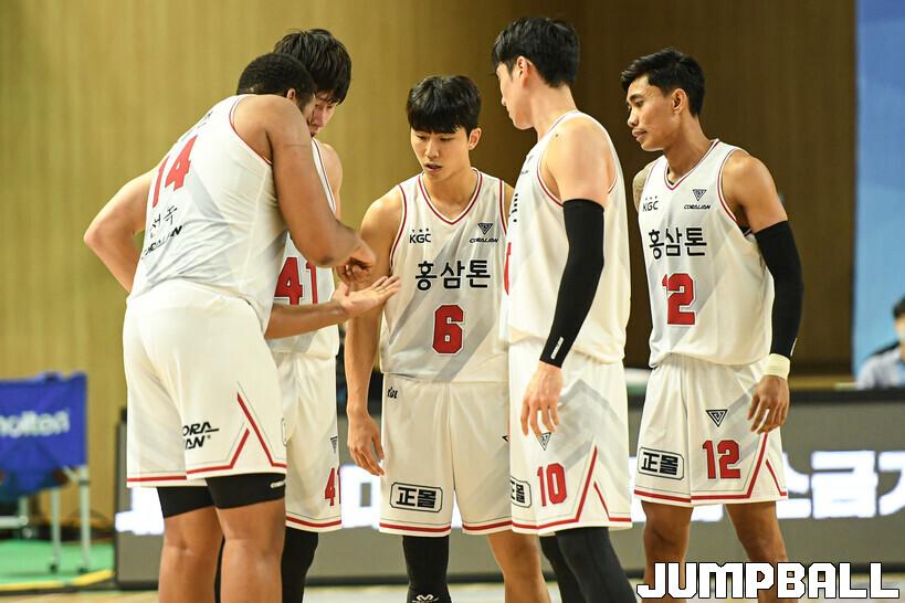 5일 통영체육관에서 열린 2022 MG새마을금고 KBL 컵대회 안양 KGC인삼공사와 상무의 경기, KGC 선수단이 대화를 나누고 있다.