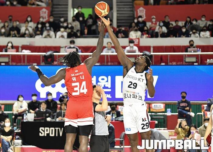 20일 잠실학생체육관에서 열린 2022-2023 SKT 에이닷 프로농구 서울 SK와 수원 KT의 경기, KT가 81-69로 SK에 원정 승리를 거뒀다. [점프볼=잠실/유용우 기자]