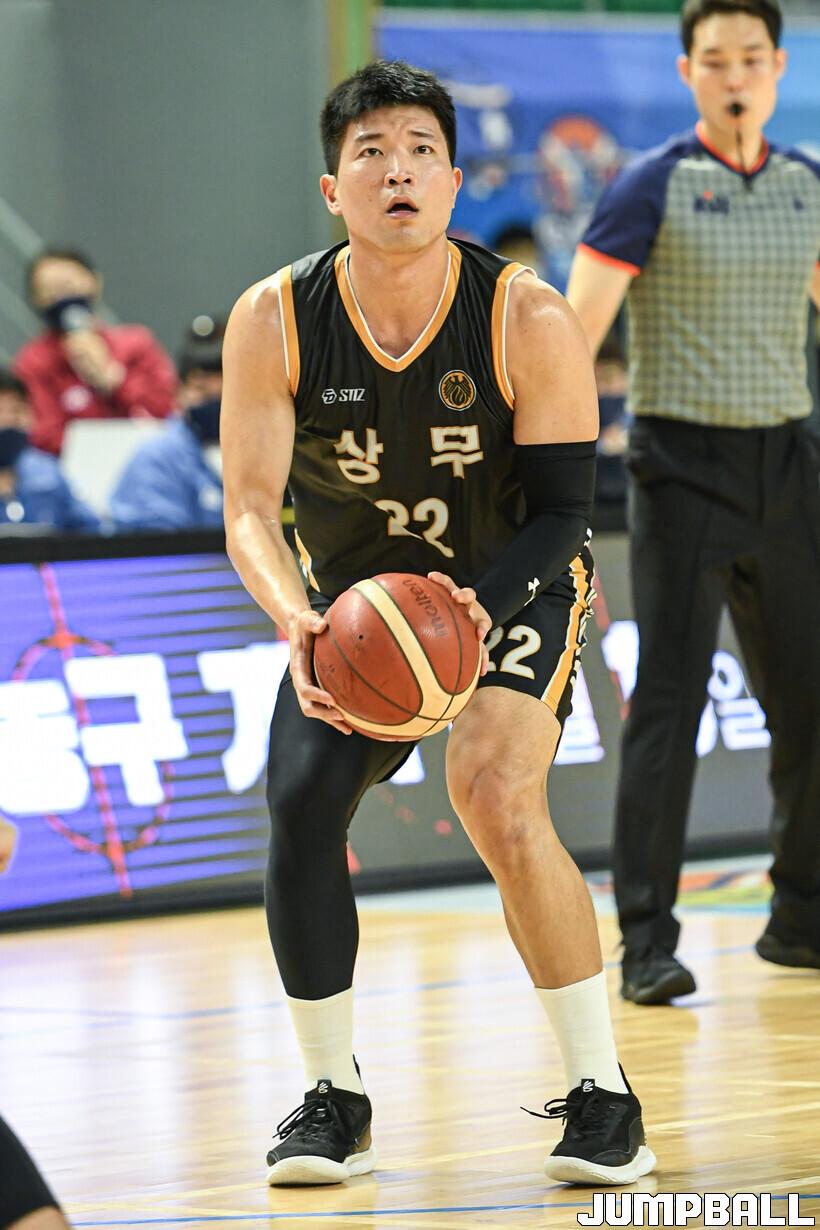 5일 통영체육관에서 열린 2022 MG새마을금고 KBL 컵대회 안양 KGC인삼공사와 상무의 경기, 상무 김한솔이 3점슛을 시도하고 있다.