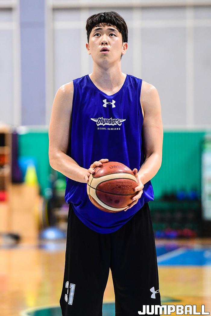 [점프볼=용인/박상혁 기자] 28일 용인에 위치한 삼성휴먼센터에서 열린 서울 삼성과 한양대의 연습경기, 삼성 김준일이 자유투를 시도하고 있다.