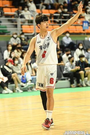 5일 통영체육관에서 열린 2022 MG새마을금고 KBL 컵대회 안양 KGC인삼공사와 상무의 경기, KGC 배병준이 골밑으로 들어가고 있다.