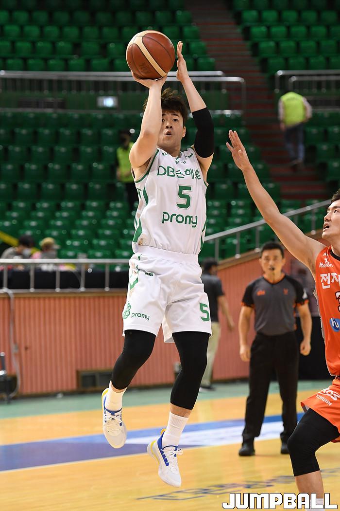 [점프볼=군산/박상혁 기자] 25일 군산월명체육관에서 열린 2020 MG새마을금고 KBL컵 인천 전자랜드와 원주 DB의 경기, DB 맹상훈이 점프슛을 시도하고 있다.