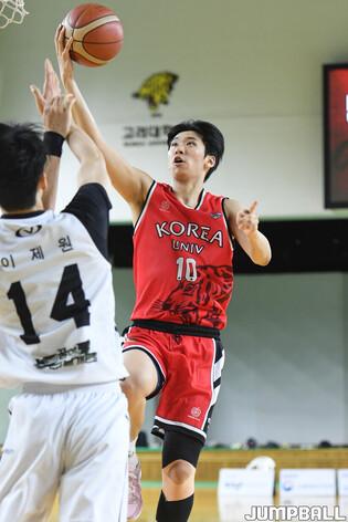 [점프볼=안암/박상혁 기자] 12일 고려대 화정체육관에서 열린 2025 KUSF 대학농구 U-리그 고려대와 성균관대의 경기, 성균관대 이제원이 점프슛을 시도하고 있다.