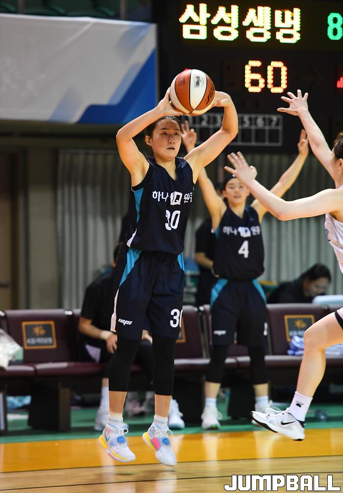 [점프볼=청주/문복주 기자] 17일 청주체육관에서 열린 '2020 우리은행 박신자컵 서머리그' 하나원큐와 삼성생명의 경기, 하나원큐 김미연이 외곽에서 3점슛을 던지고 있다.