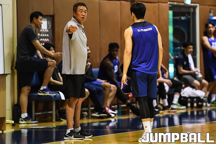 [점프볼=용인/박상혁 기자] 27일 경기도 용인 마북리에 위치한 KCC 연습체육관에서 열린 KCC와 KGC 연습경기, KCC 전창진 감독이 유현준에게 지시를 내리고 있다.
