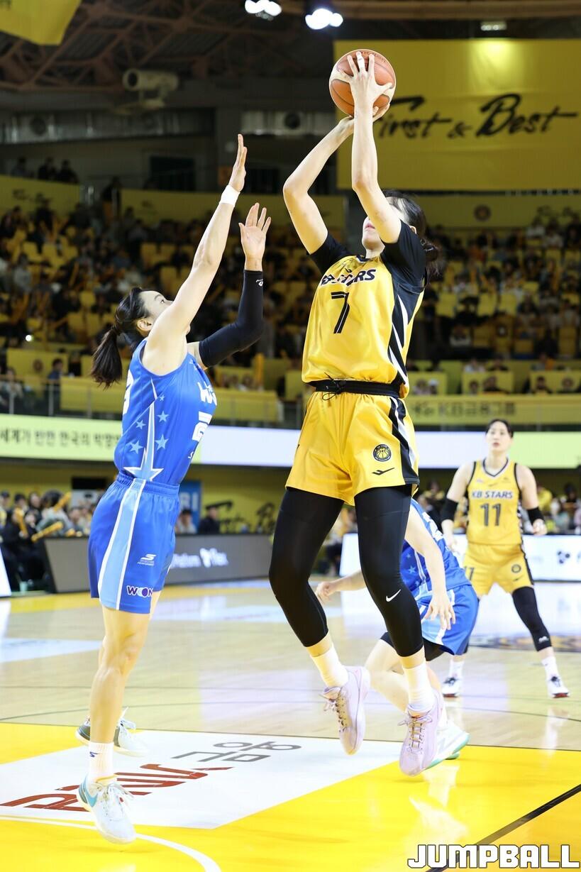 청주 KB스타즈는 27일 청주 KB스타즈 챔피언스파크에서 열린 BNK금융 2025~2026 여자프로농구 아산 우리은행과의 맞대결에서 66-68로 패배, 4연승 도전에 실패했다. 시즌 전적은 7승 5패의 공동 2위다.