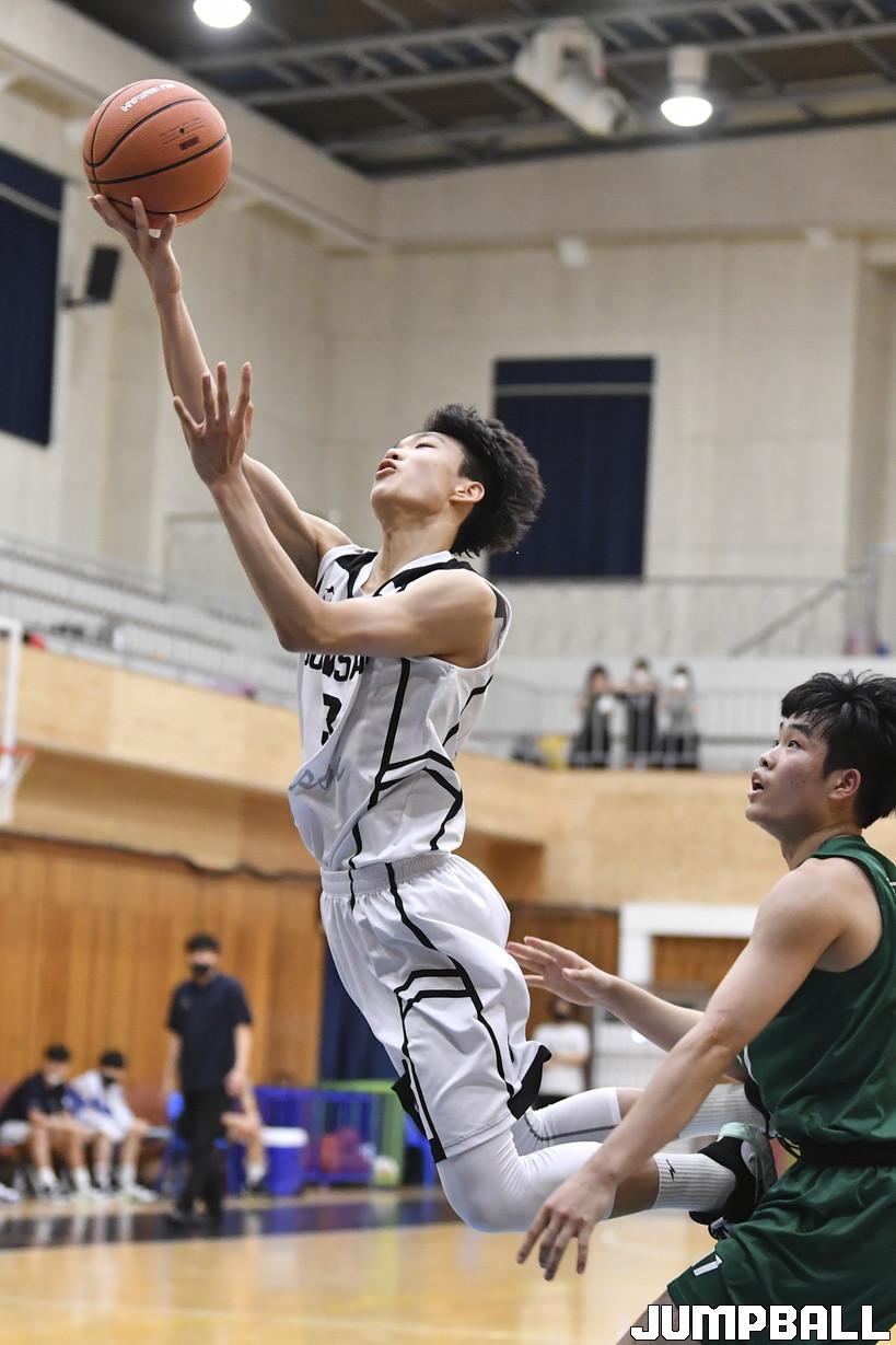 2일 군산고등학교 체육관에서 열린 2022 한국중고농구 주말리그 군산고와 광주고의 경기. 군산고 손현창이 서커스를 하듯 레이업을 올리고 있다.