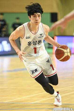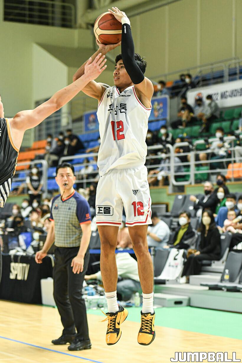 5일 통영체육관에서 열린 2022 MG새마을금고 KBL 컵대회 안양 KGC인삼공사와 상무의 경기, KGC 렌즈 아반도가 3점슛을 시도하고 있다.