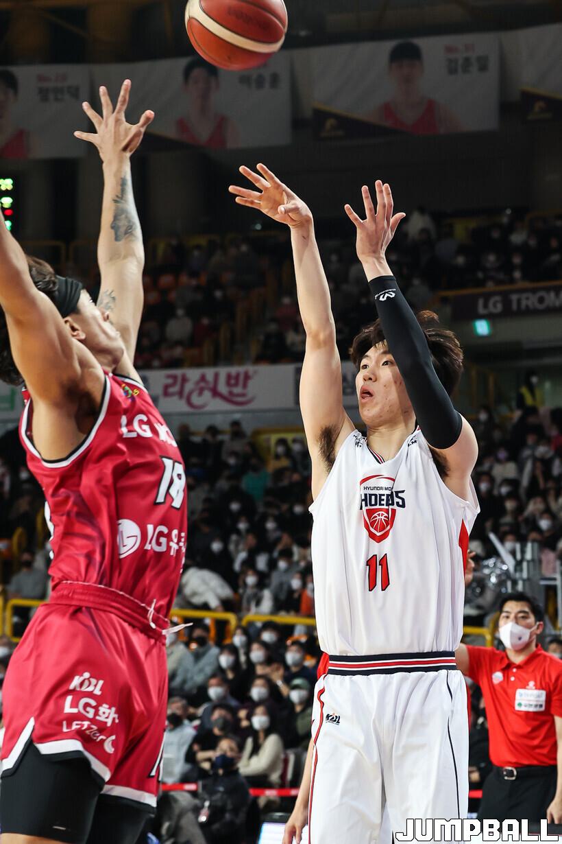 [점프볼=윤민호 기자] 울산 현대모비스는 1일 창원체육관에서 열린 2022~2023 SKT 에이닷 프로농구 창원 LG와 원정 경기에서 77-73으로 이겼다.