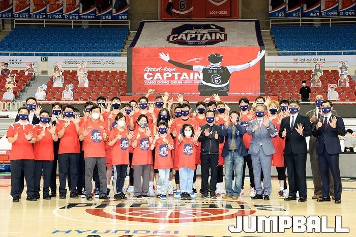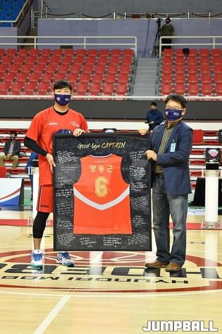[점프볼=울산/유용우 기자] 11일 울산 동천체육관에서 '2020-2021 현대모비스 프로농구' 울산 현대모비스와 원주 DB의 경기를 마치고, 현대모비스 양동근의 공식 은퇴식이 열렸다. 양동근은 오는 20일 미국 워싱턴으로 떠나 어학연수와 농구 공부를 겸할 계획이다.