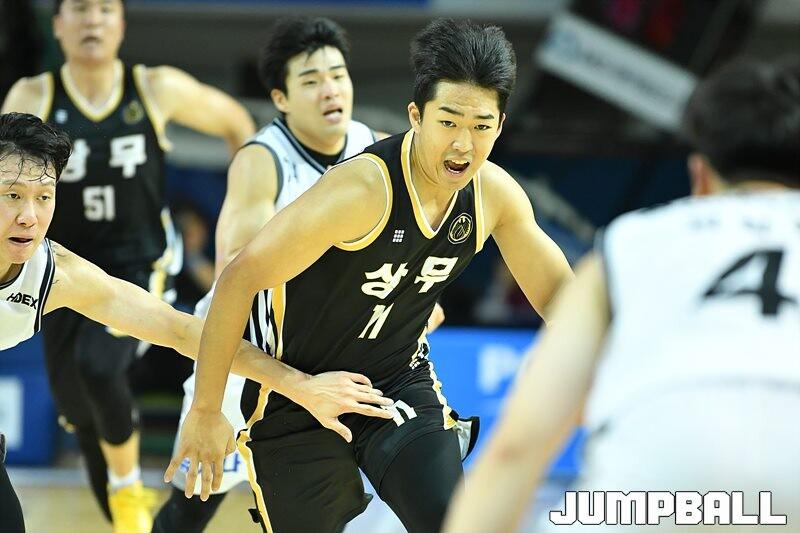 8일 군산월명체육관에서 열린 2023 MG새마을금고 KBL 컵대회 상무와 KT의 예선 경기, 상무 박지원이 공격 돌파를 하고 있다. [점프볼=군산/유용우 기자]