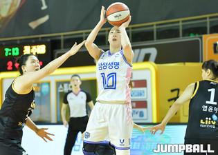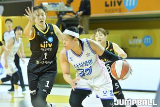 [점프볼=청주/유용우 기자] 24일 청주체육관에서 열린 'KB국민은행 Liiv M 2020-2021 여자프로농구' KB와 삼성생명의 경기, 삼성생명 이명관이 돌파를 하고 있다.