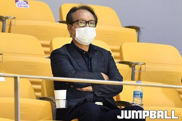 [JB포토] 트리플잼 경기 관전하는 WKBL 이병완 총재