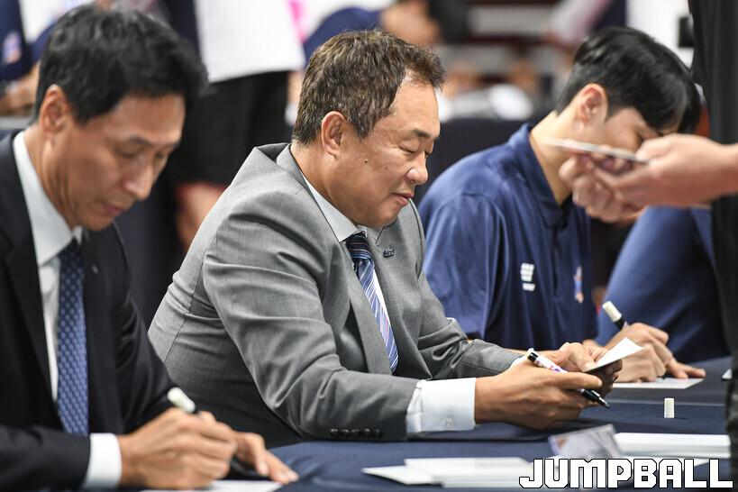 [점프볼=부산/박상혁 기자] 25일 부산사직체육관에서 진행된 부산KCC이지스 연고지 협약식 및 출정식, KCC 전창진 감독이 팬들에게 사인을 하고 있다.