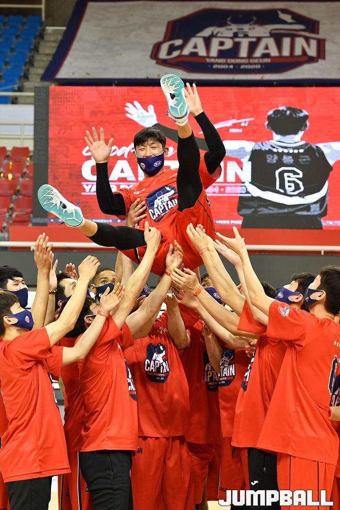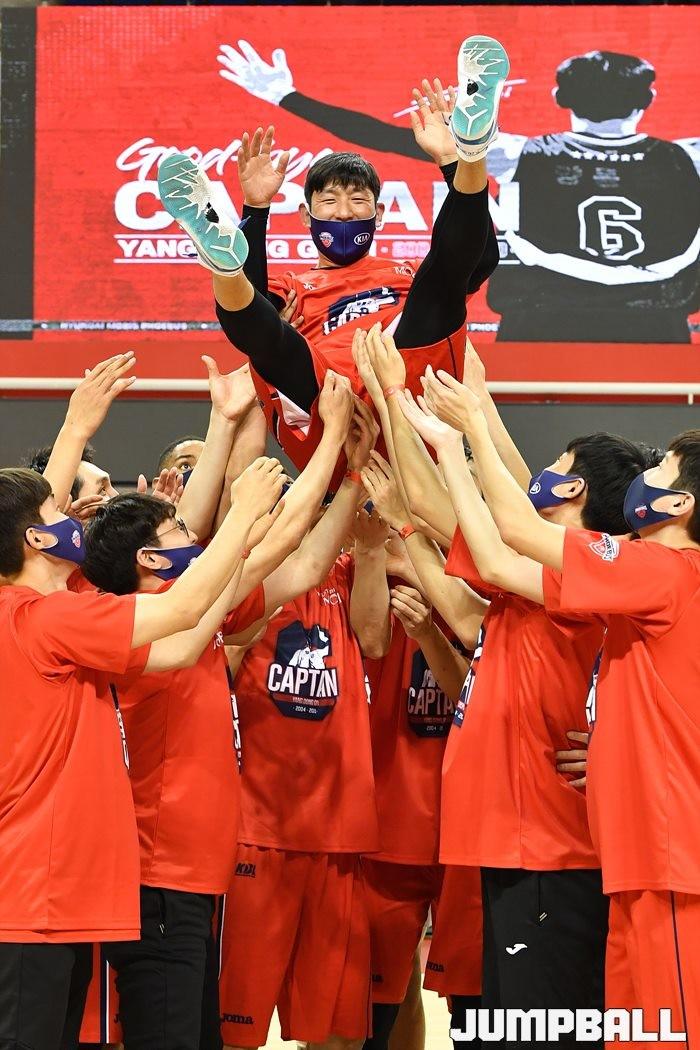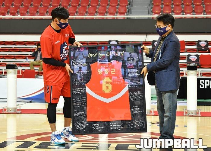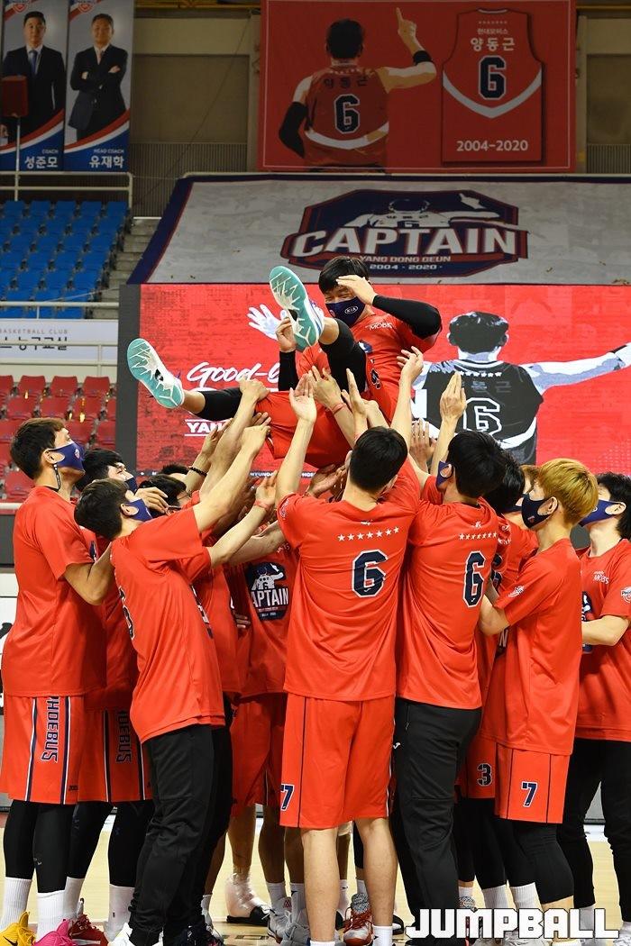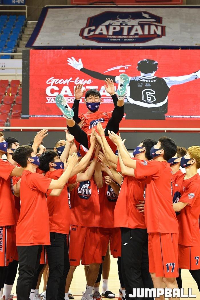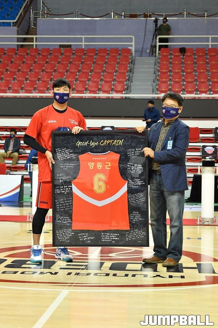 [점프볼=울산/유용우 기자] 11일 울산 동천체육관에서 '2020-2021 현대모비스 프로농구' 울산 현대모비스와 원주 DB의 경기를 마치고, 현대모비스 양동근의 공식 은퇴식이 열렸다. 양동근은 오는 20일 미국 워싱턴으로 떠나 어학연수와 농구 공부를 겸할 계획이다.