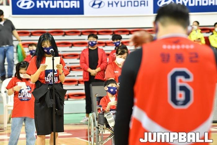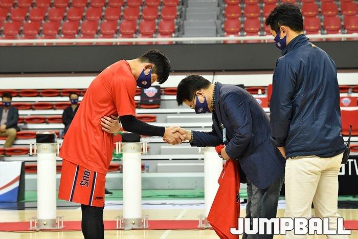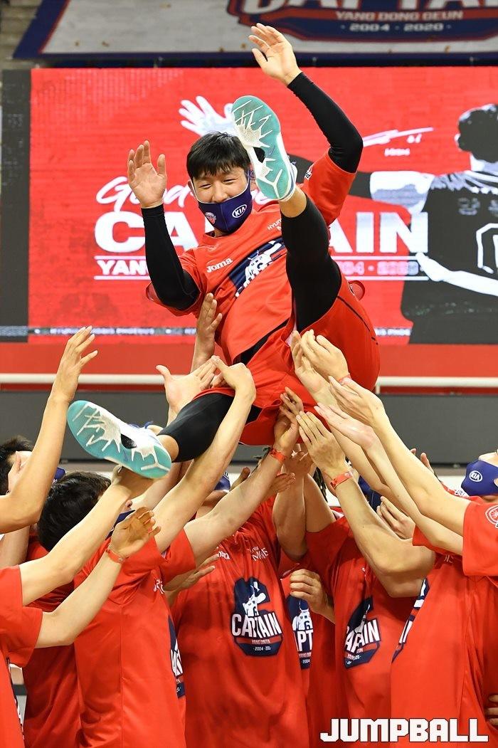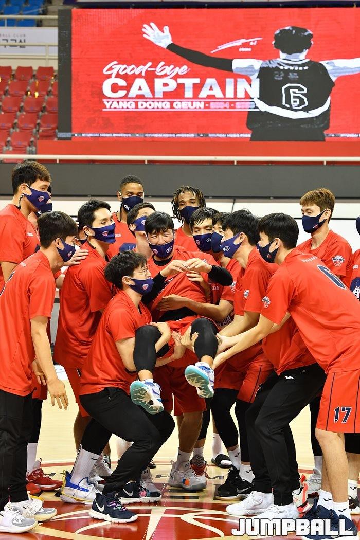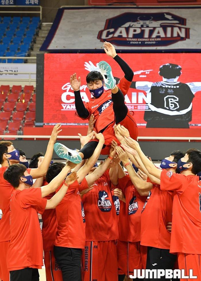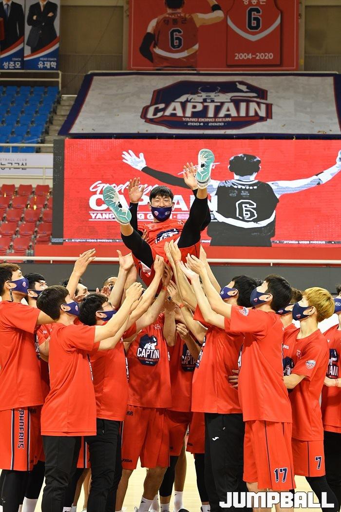 [점프볼=울산/유용우 기자] 11일 울산 동천체육관에서 '2020-2021 현대모비스 프로농구' 울산 현대모비스와 원주 DB의 경기를 마치고, 현대모비스 양동근의 공식 은퇴식이 열렸다. 양동근은 오는 20일 미국 워싱턴으로 떠나 어학연수와 농구 공부를 겸할 계획이다.