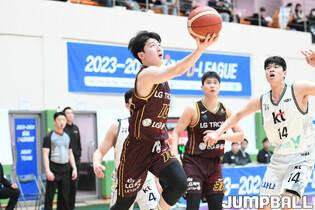 [점프볼=이천/박상혁 기자] 23일 경기도 이천 LG챔피언스파크에서 열린 2023-2024 KBL D리그 창원 LG와 수원 KT의 경기, KT 숀 데이브 일데폰소가 슛을 시도하고 있다.