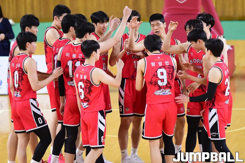 [점프볼=안암/박상혁 기자] 7일 고려대 화정체육관에서 열린 2025 KUSF 대학농구 U-리그 고려대와 중앙대의 플레이오프 4강전 경기, 고려대 선수들이 경기 시작 전 화이팅을 외치고 있다.