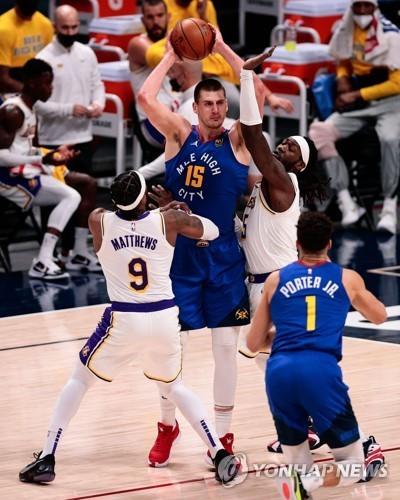 ▶덴버는 ‘조커’ 니콜라 요키치가 23득점 16리바운드 10어시스트로 트리플더블을 작성하며 앤써니 데이비스가 아킬레스건 부상으로 경기 도중 빠진 레이커스를 잡아냈다. 레이커스는 르브론 제임스가 22득점으로 힘을 내봤으나 역부족이었다.