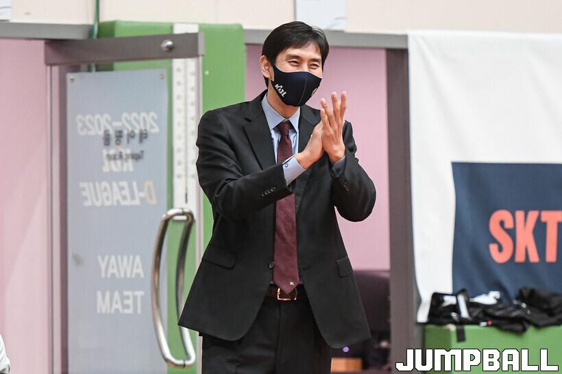 22일 이천 LG챔피언스파크에서 열린 2022-2023 KBL D리그 1차대회 상무와 SK의 경기, 상무 장창곤 감독이 선수들을 독려하고 있다.
