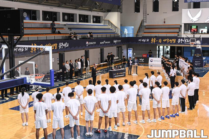 19일 연세대 신촌캠퍼스 체육관에서 제46회 한일 대학선발 농구대회 1일차 경기가 열렸다. 경기 시작 전 개회식을 가졌다.
