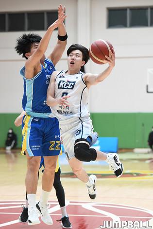 [점프볼=이천/박상혁 기자] 2일 이천 LG챔피언스파크에서 열린 2020-2021 KBL D리그 2차대회 삼성과 KCC의 경기, 삼성 김한솔이 훅슛을 시도하고 있다.
