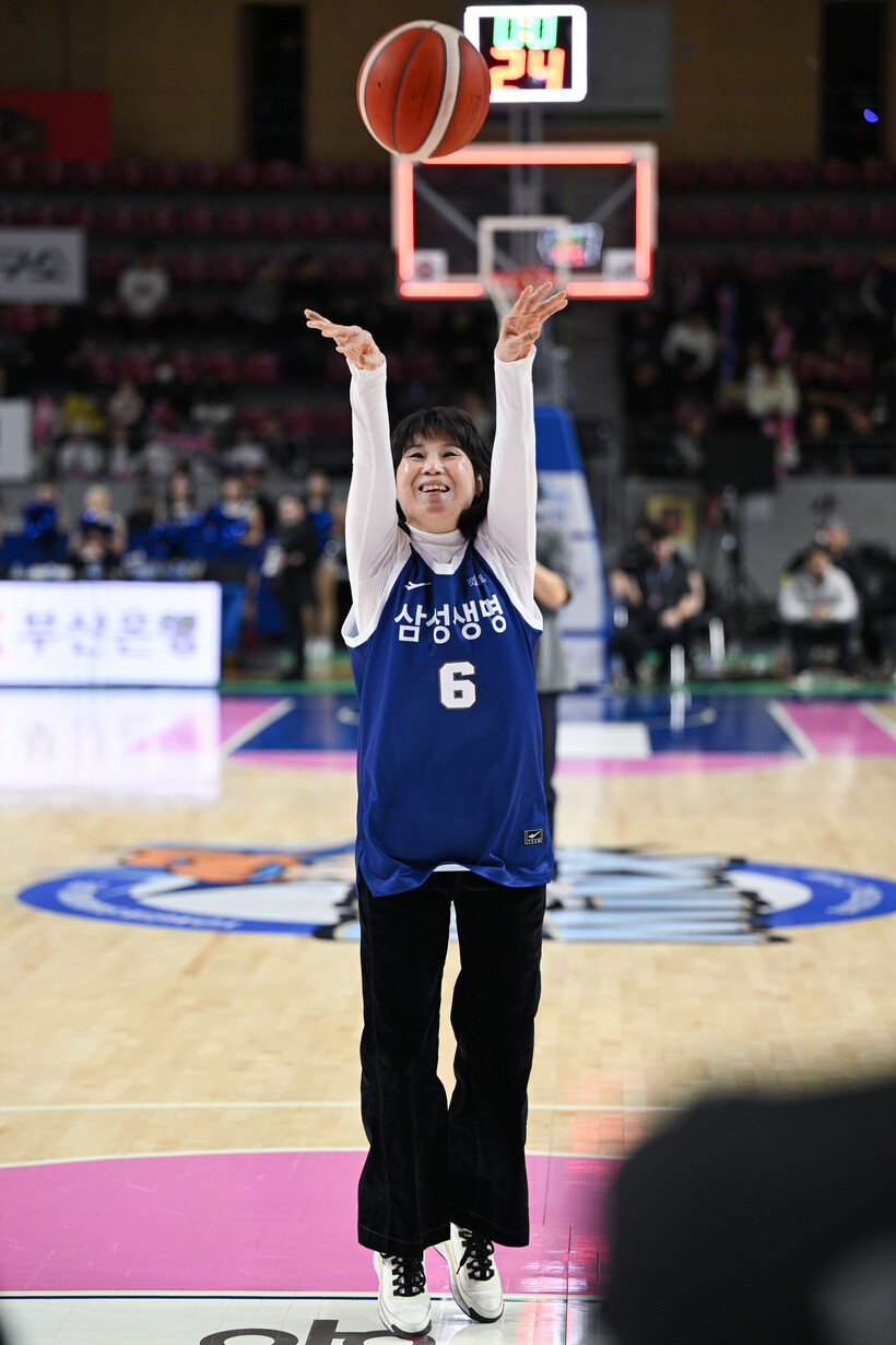 시구자로 나선 최경희는 농구대잔치 역대 여자선수 최다득점(3939점), MVP 3회를 수상한 한 시대의 슈퍼스타다. 시간의 흐름과 함께 추억의 이름이 됐다.
