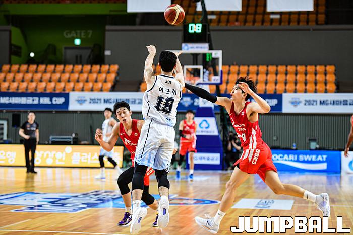13일 경상북도 상주시 상주실내체육관에서 열린 2021 MG새마을금고 KBL컵 대회 서울 SK와 전주 KCC의 경기, KCC 이근휘가 버저비터를 시도하고 있다.