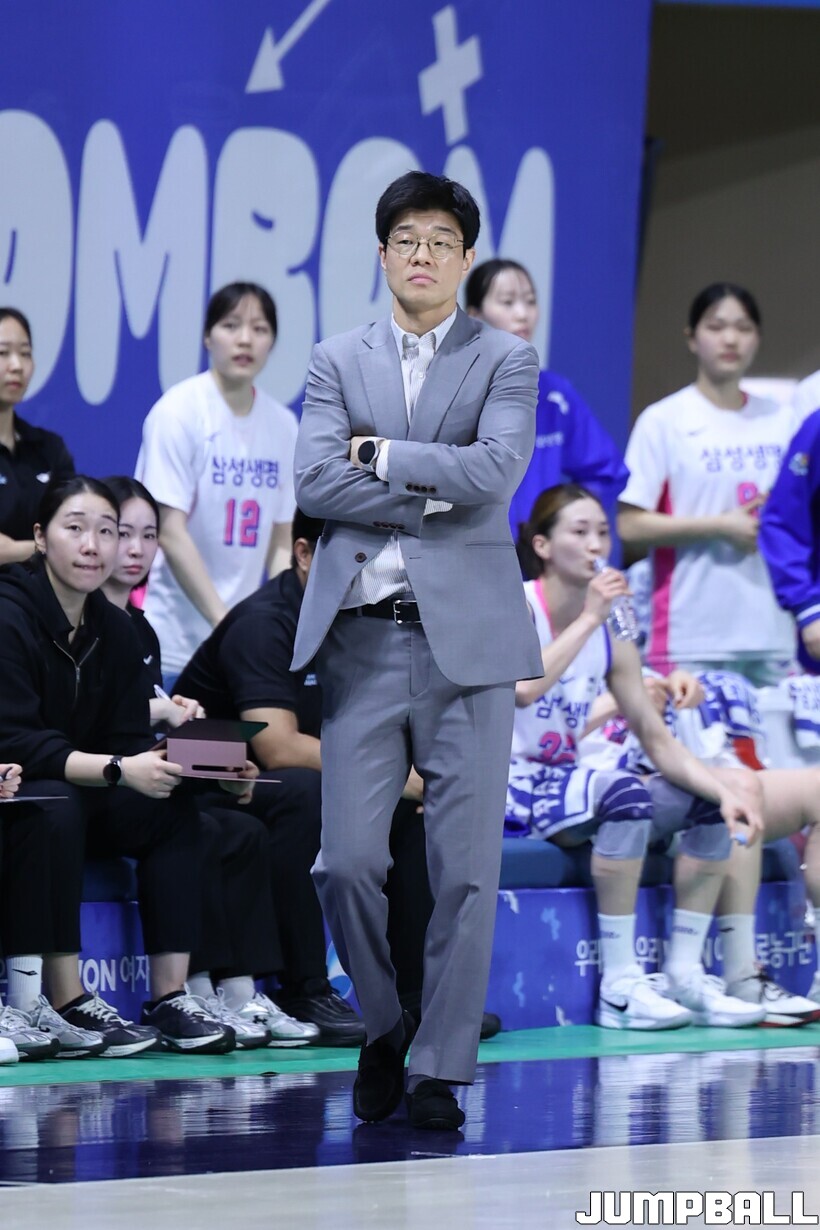 하상윤 감독이 이끄는 용인 삼성생명은 15일 아산 이순신 체육관에서 열린 BNK금융 2025~2026 여자프로농구 아산 우리은행과의 맞대결에서 58-56으로 승리, 연패 위기에서 벗어났다. 극적인 승리를 기록한 삼성생명은 우리은행을 제치고 단독 3위(12승 12패)로 올라섰다.
