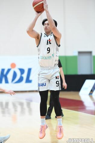 [점프볼=이천/박상혁 기자] 23일 경기도 이천 LG챔피언스파크에서 열린 2023-2024 KBL D리그 서울 SK와 부산 KCC의 경기, SK 박민우가 슛을 시도하고 있다.